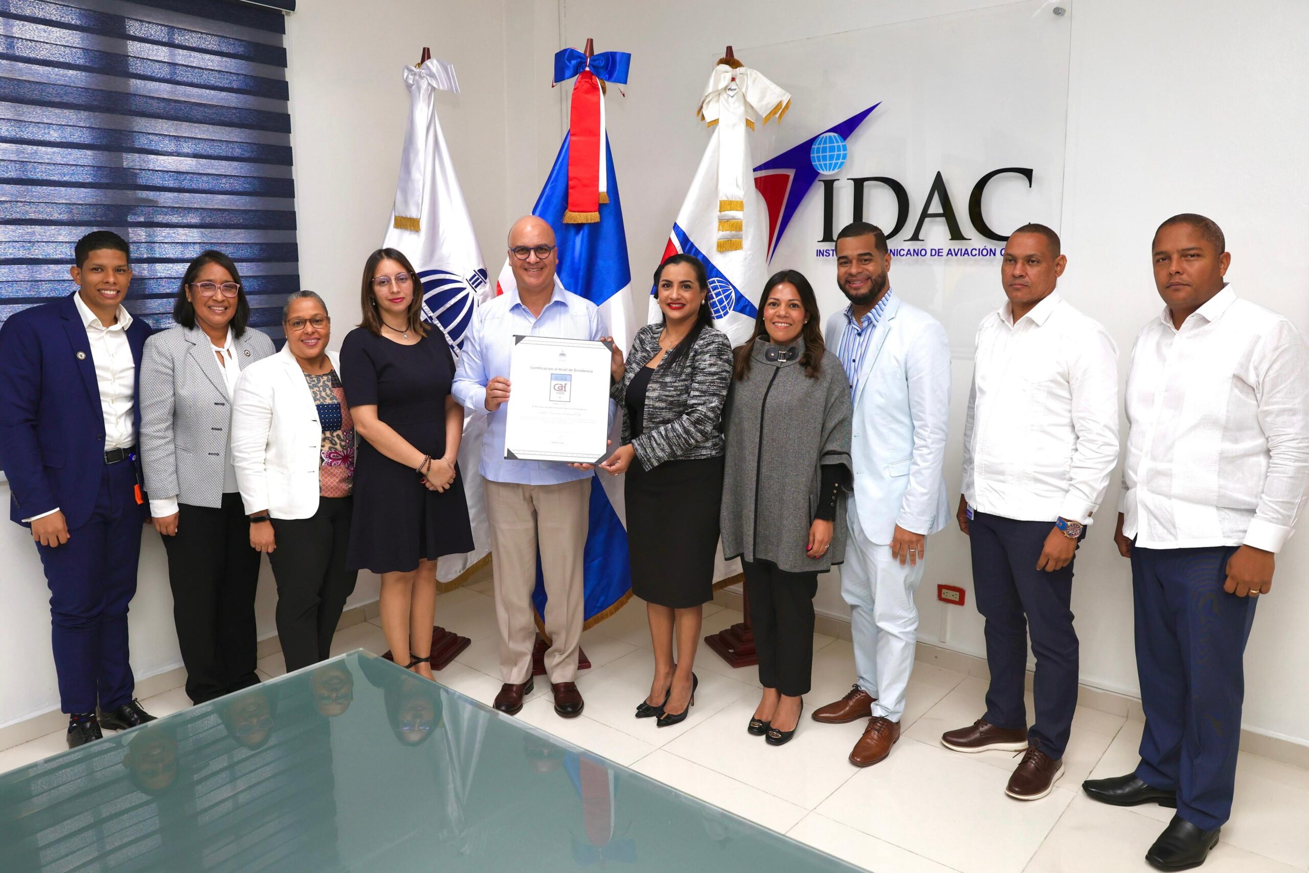 Santo Domingo. – El Instituto Dominicano de Aviación Civil continúa su constante y ascendente ruta hacia la excelencia administrativa, prueba de esto lo sustenta la recertificación en el Nivel de Excelencia: Sello CAF, que otorga el Ministerio de Administración Pública (MAP), en cuanto a su consolidación de una cultura organizacional en la integridad, la transparencia, la sostenibilidad y la orientación a resultados.