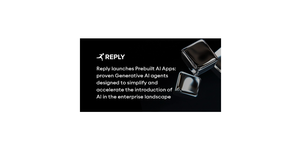 TURÍN, Italia–(BUSINESS WIRE)–Reply [EXM, STAR: REY] ha lanzado hoy Prebuilt AI Apps: agentes probados de IA generativa diseñados para simplificar y acelerar la introducción de la IA en el panorama empresarial.